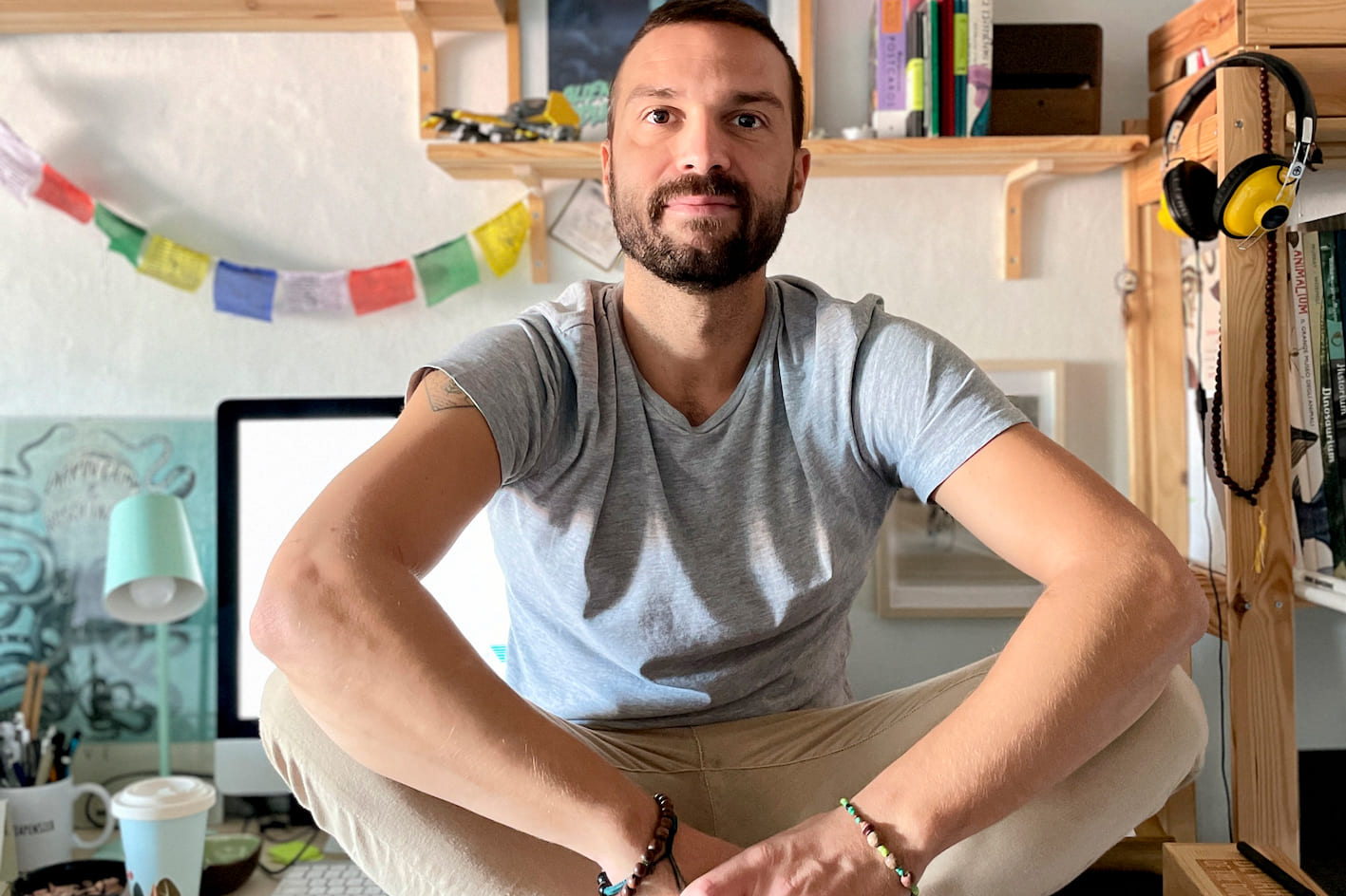 His style varies depending on the graphic design. As far as illustration is concerned, his characters are always small and the other objects in the drawing very disproportionate. Floral and botanical elements are often present. As far as motion graphics are concerned, his aim is to capture the attention and explain different themes in a short time with a dynamic and fresh language.