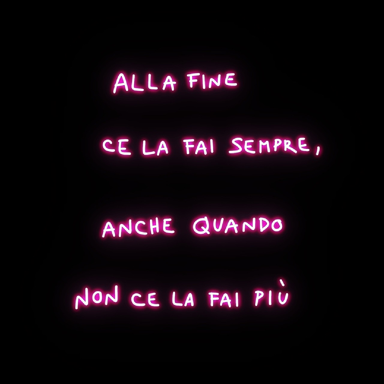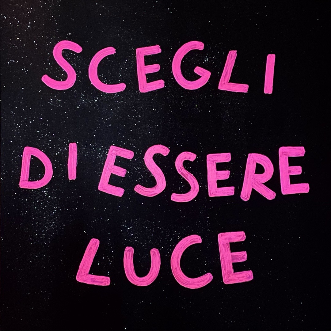 Stella’s style is characterized by the use of a mixed technique, combining brushes, acrylic colors and the use of digital. Each letter is drawn by hand, without using predefined fonts. The dominant color in her works is pink, but especially when she creates larger formats on canvas, she also likes to experiment with glitter and fluorescent hues, creating luminous effects with UV light.