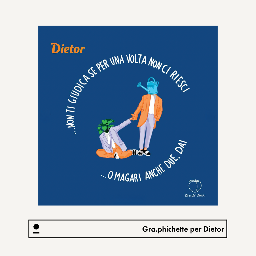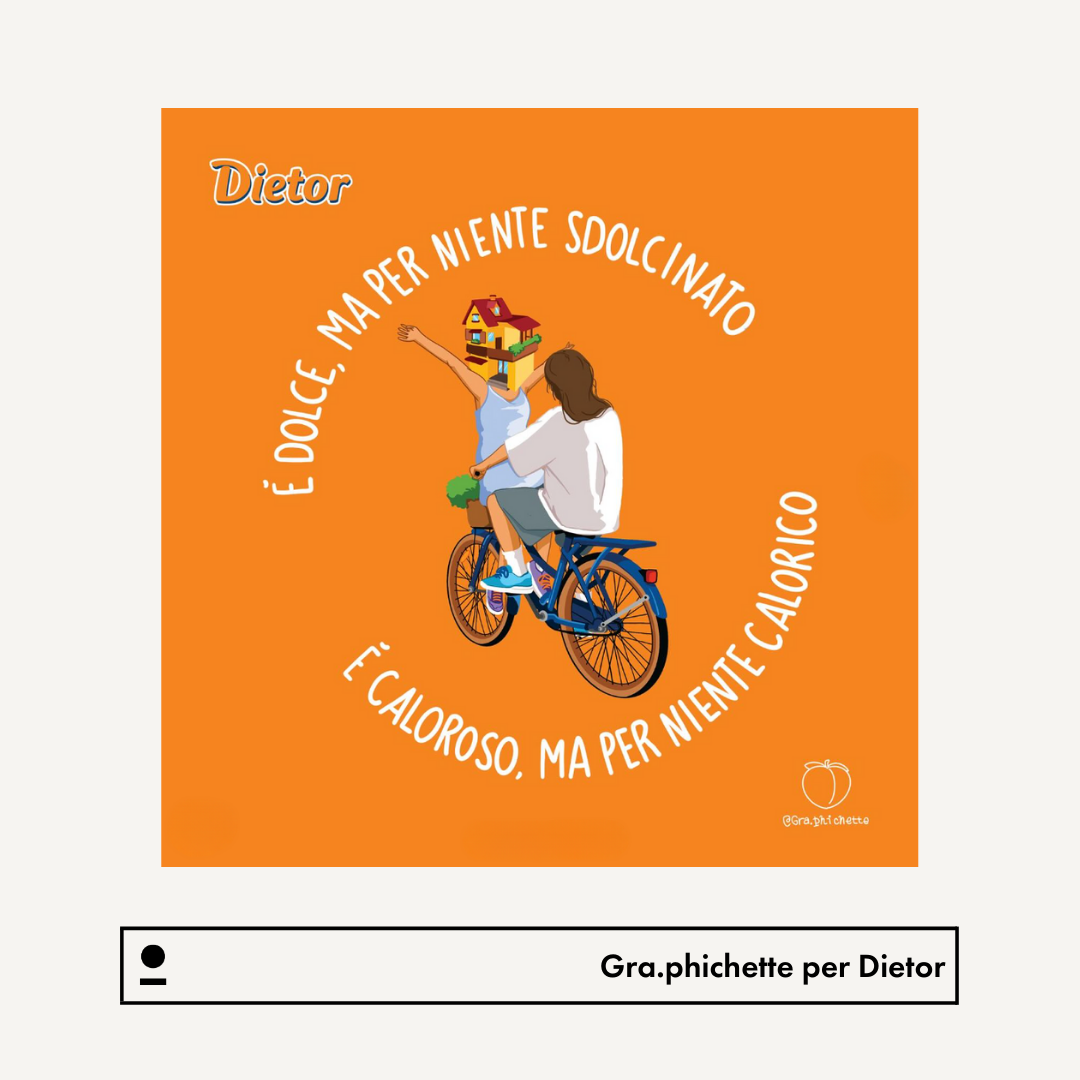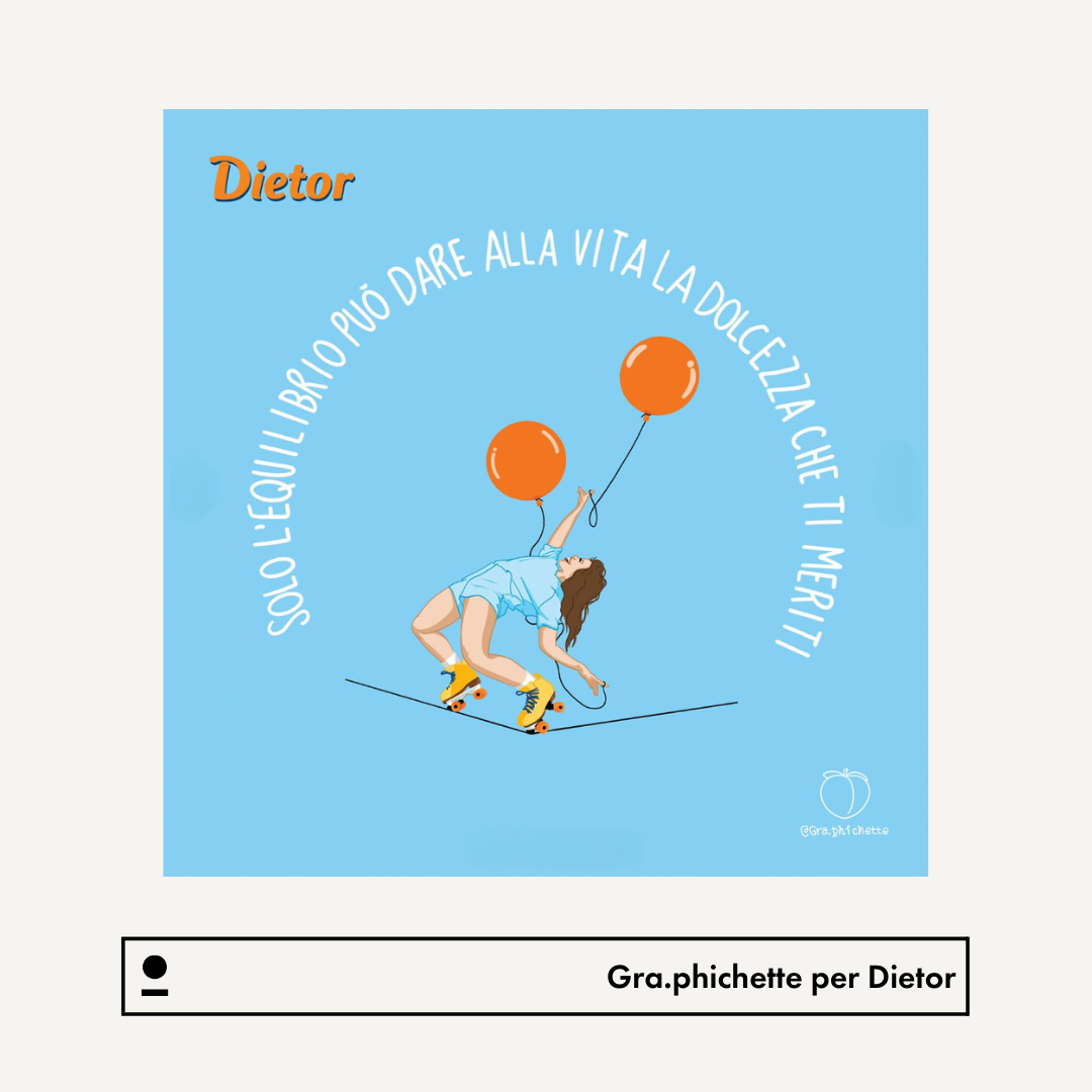 Gra.phichette created three illustrations interpreting the claim “The sweetness you deserve,” which were declined on tote bags and customized live painting postcards during the event. Her works also decorated the walls and pop-up spaces in the form of posters. The collaboration extended to social media, with a carousel and a set of stories shared on Dietor’s official page, amplifying the message of light but richly flavored sweetness.