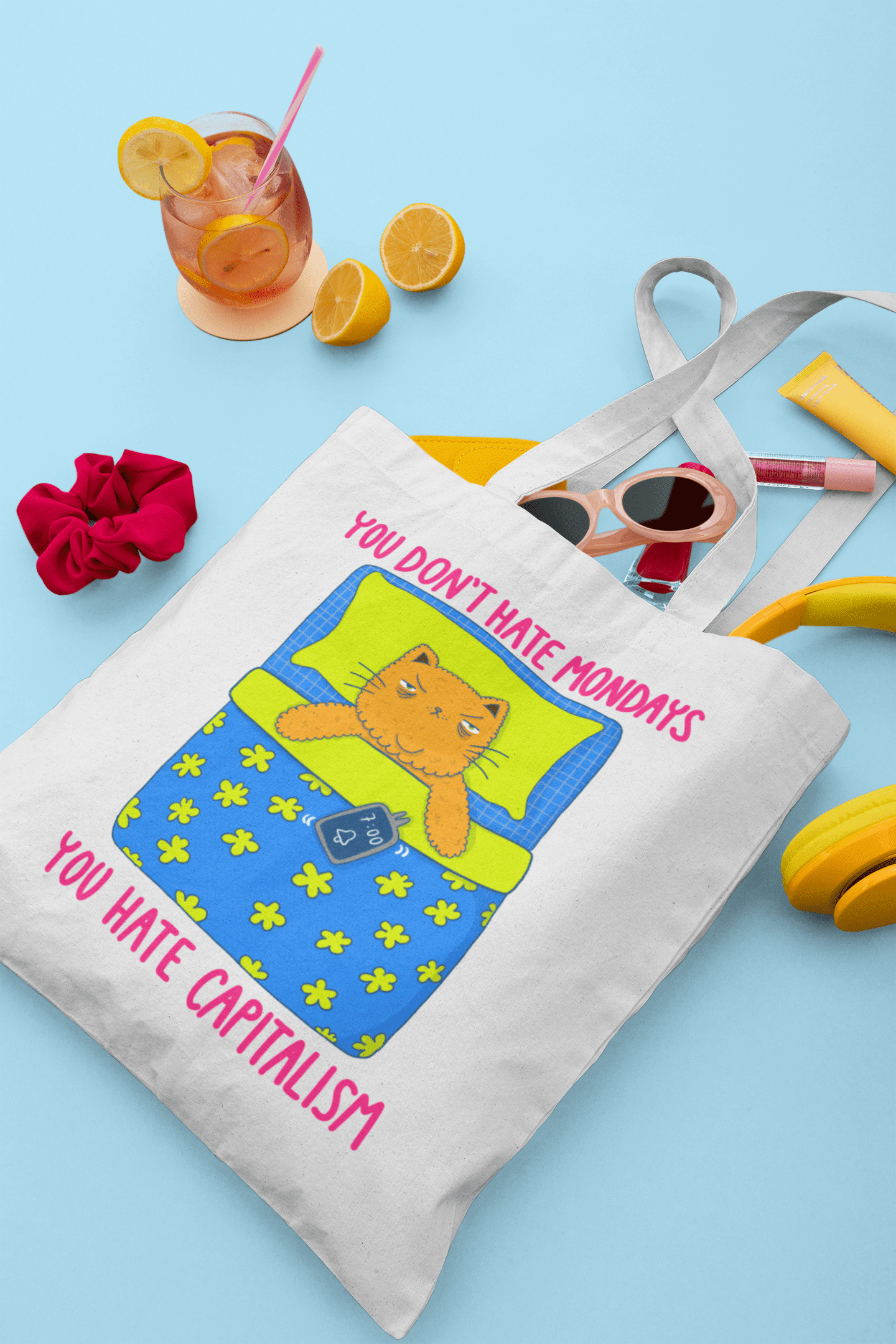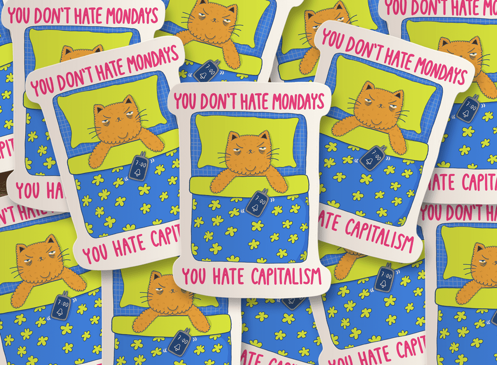 Thanks to Chiaralascura’s creative flair, the concept of the podcast ‘YOU DON’T HATE MONDAYS’ takes shape in two exclusive illustrations, featured on four products: mugs, stickers, tote bags and t-shirts.