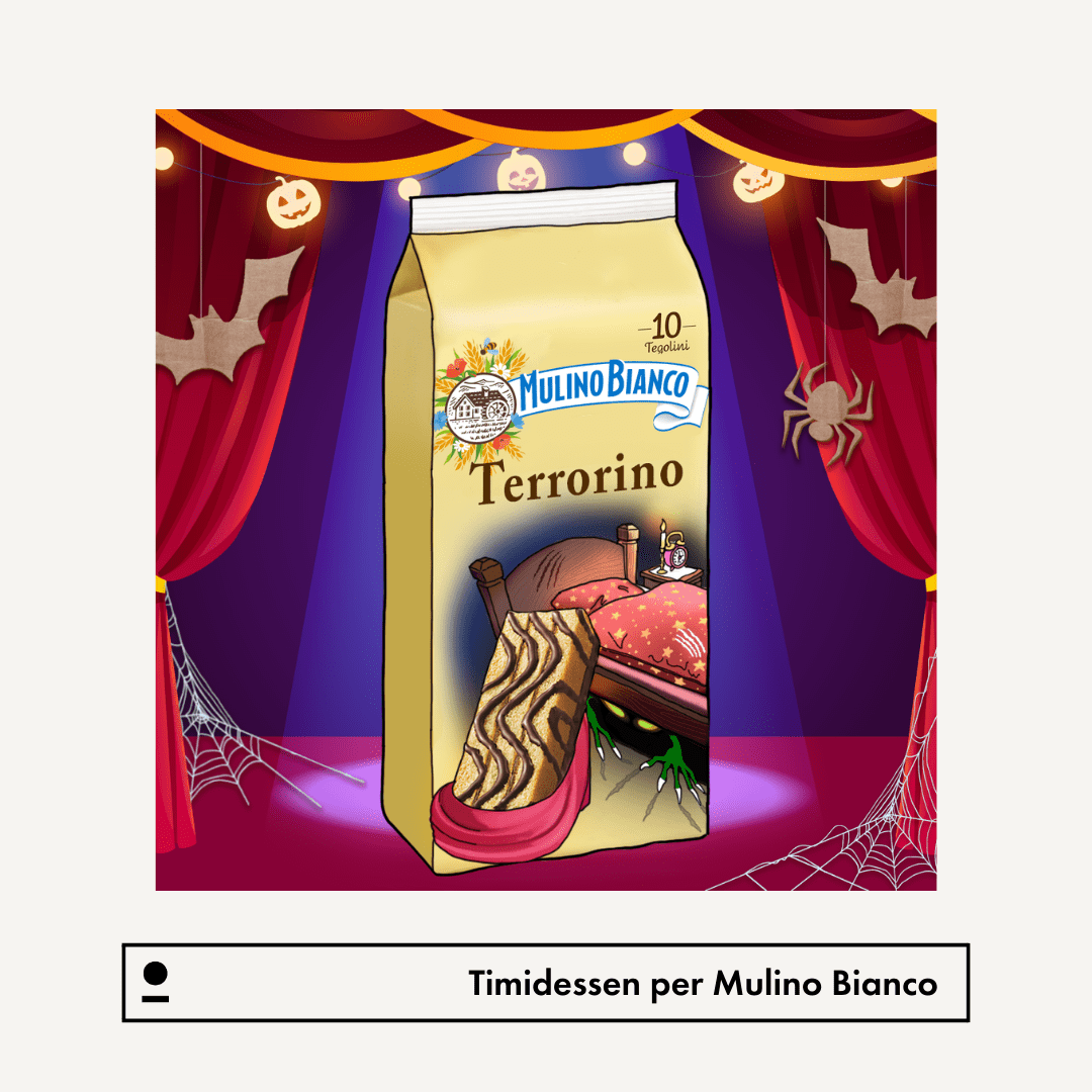 A monstrously sweet Halloween? For the occasion, Timidessen disguised some Mulino Bianco products, transforming them into frighteningly funny creatures.