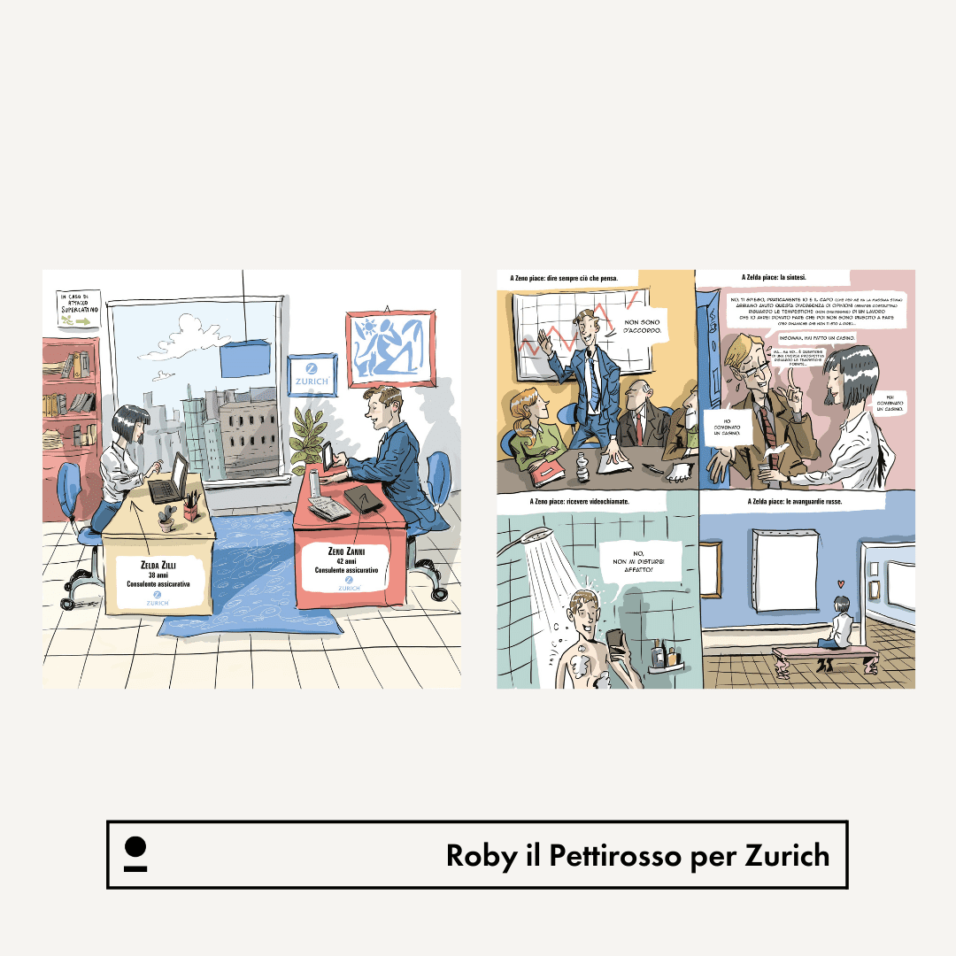 The creation of a comic strip by Roby il Pettirosso to present Zurich Connect’s new Privacy Policy in an ironic and comprehensive way.
