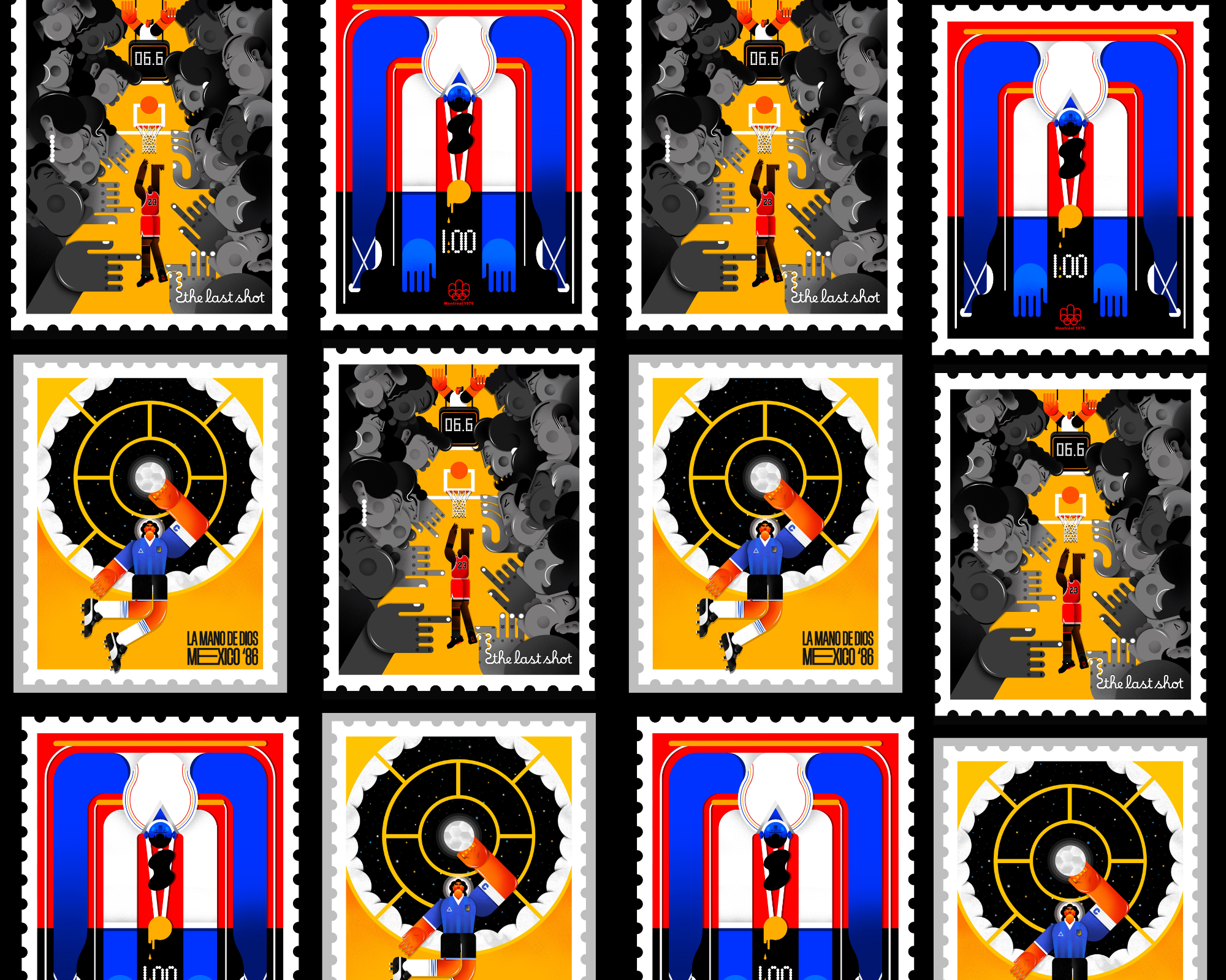 Il racconto dei momenti iconici dello Sport, sintetizzati graficamente e digitalmente in una piccola collezione di francobolli illustrati.