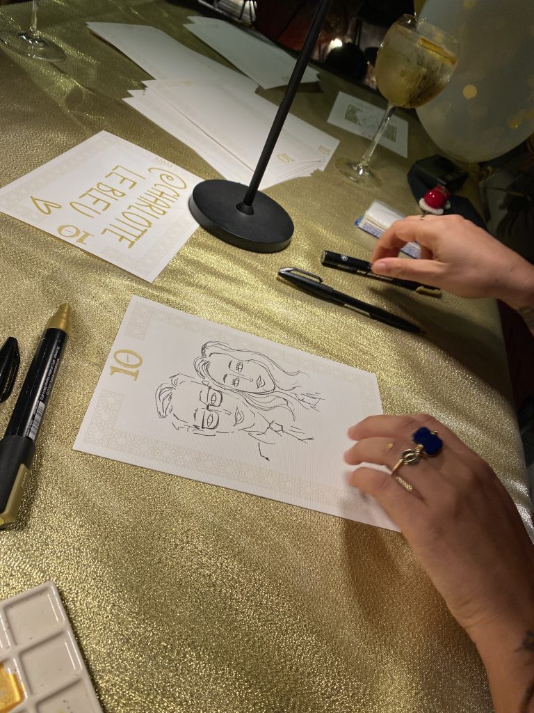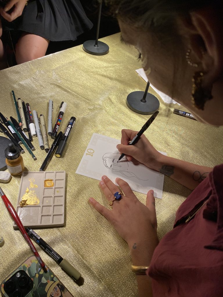 Charlotte Le Bleu in occasione dei festeggiamenti per i dieci anni dall’inaugurazione del primo Nashi Store, illustra in live sketichin gli invitati all’evento.