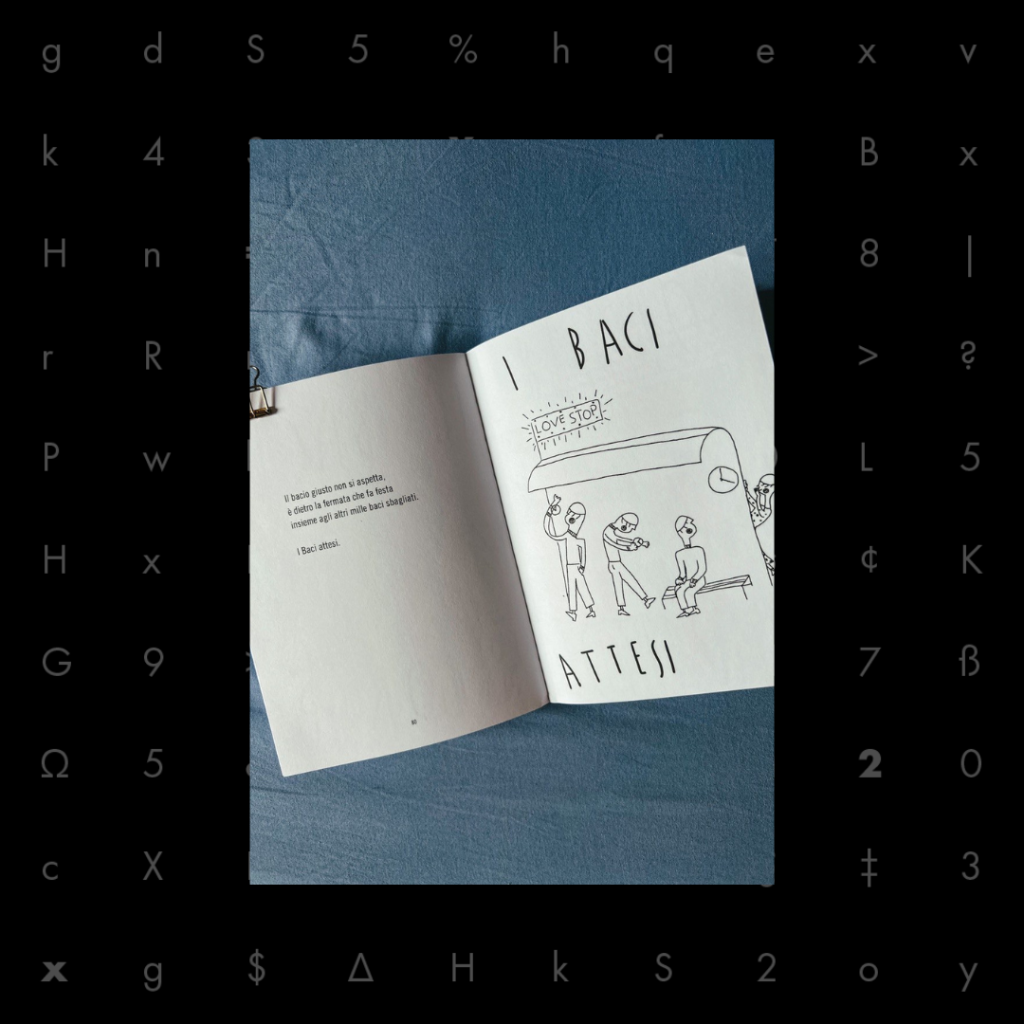 A novembre, lettera K, di kiss. Alan Zeni, alla domanda “perché i baci?”, ci risponde così:” Il bacio è un giudice, è il momento in cui fai cadere tutti i tuoi muri, in cui ti viene in mente quello che hai lasciato irrisolto”.