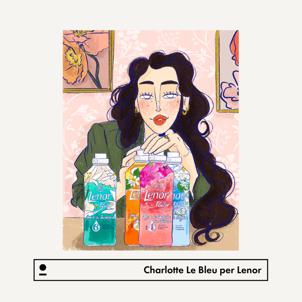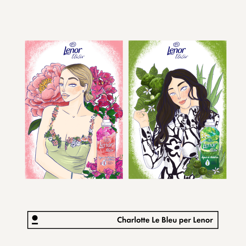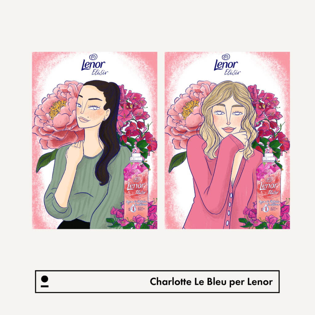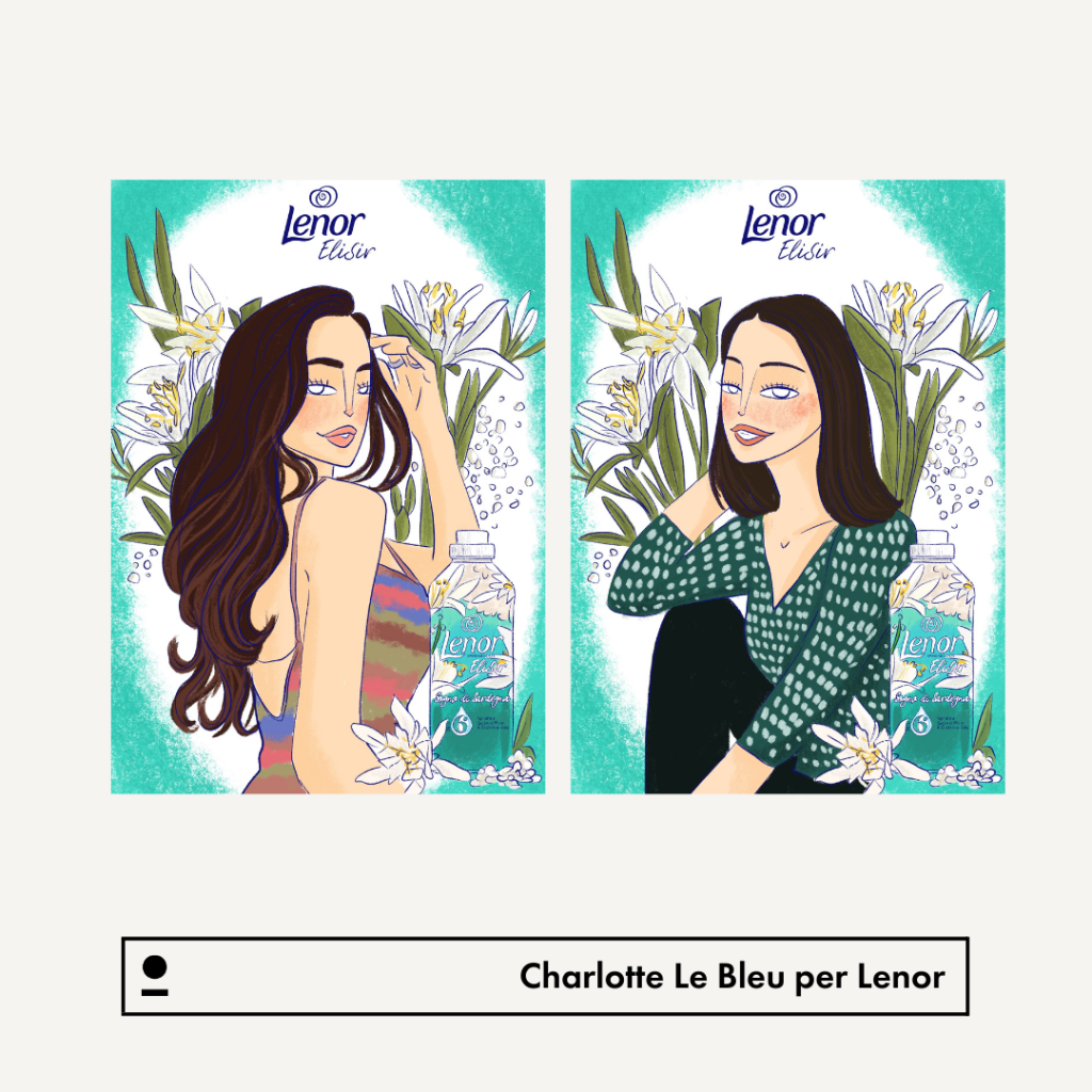Il video è il tassello finale di un’attività che ha visto Carlotta realizzare dieci ritratti di influencer, alle quali Lenor ha spedito una box contenente la loro nuova linea Lenor Elisir e la stampa dei ritratti creati da Carlotta.