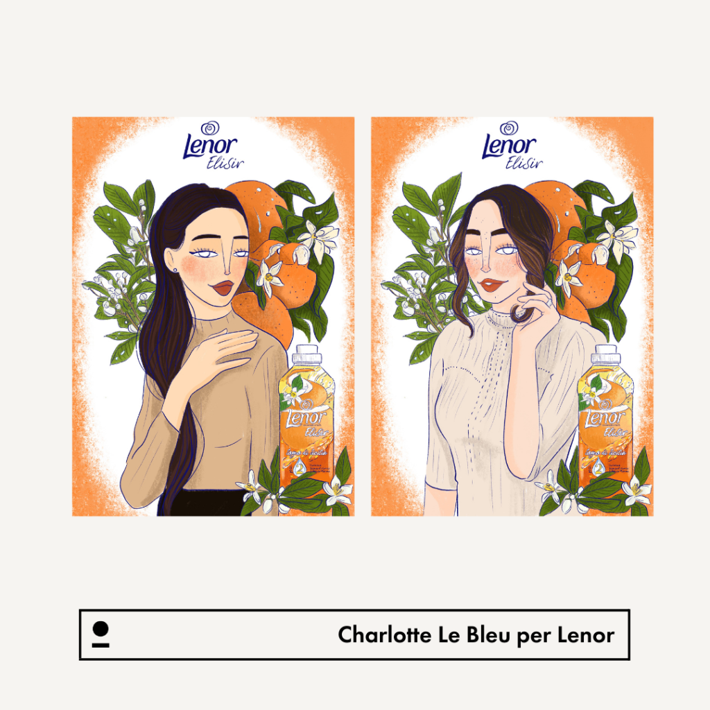 Cliente: @lenoritalia Stili: Illustration, Portrait, Social Media Concept: Lenor Elisir Illustratrice: @charlottelebleu Contenuti: un reel per raccontare la nuova collezione ispirata agli ingredienti iconici delle terre italiane e 10 ritratti.