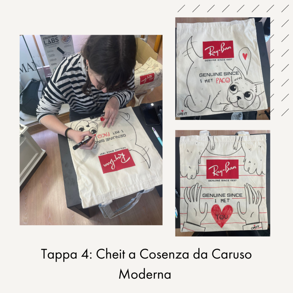 Cliente:@rayban Style: Live performance Concept: “Genuine since” – lancio dei nuovi modelli MEGA Wayfarer e MEGA Clubmaster Illustratrici:Cheit, Juls Criveller e Gra.phichette Contenuti: customizzazione live delle tote bags omaggiate con l’acquisto di un modello RayBan.